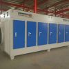 光氧净化器催化设备在外加电场的作用下,介质放电产生的大量携能电子轰击污染物分子,使其电离、解离和激发,然后便引发了一系列复杂的物理、化学反应,使复杂大分子污染物转变为简单小分子物质,或使有毒有害物质转变成无害或低毒低害的物质,从而使污染物得以降解去除。因其电离后产生的电子平均能量在10ev,适当控制反应条件可以实现一般情况下难以实现或速度很慢的化学反应变得十分快速。