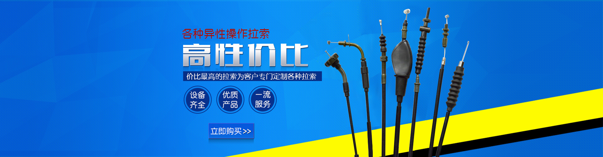 我公司地处冀南平原,是《水浒传》中打虎英雄武松的故乡,东靠卫运河与山东省相邻,京九铁路纵贯县境,308国道傍城而过,交通便利,位置优越。 本公司专业生产汽车雨刷 汽车拉线 摩托车拉线、电动车刹车线、自行车刹车线、三轮车闸线、卫浴拉线、电摩拉线、机械操纵拉锁、汽车锁线等各种异型操纵拉锁,拥有自己的品牌“旗德胜”公司拥有完整、科学的质量管理体系,技术力量雄厚,连年被评为重合同守信用单位、文明单位、全国优质诚信企业、河北省质量检验优秀企业、公司已正式通过ISO9001国际质量管理体系认证。设备精良,工艺先进,检测手段齐全,业务辐射全国,今后我公司将一如既往向广大客户提供优质的产品和一流的服务,欢迎各界朋友莅临参观、指导和业务洽谈。