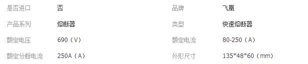 用 途:本系列熔断体适用于交流50Hz,额定电压至690V,额定电流至250A,主要用在电气线路中作为半导体设备的短路保护(aR)。