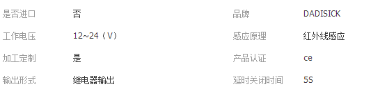 标准(默认)输出方式:12-24V     NPN常闭输出 对射距离默认出厂标准:3.5米以内