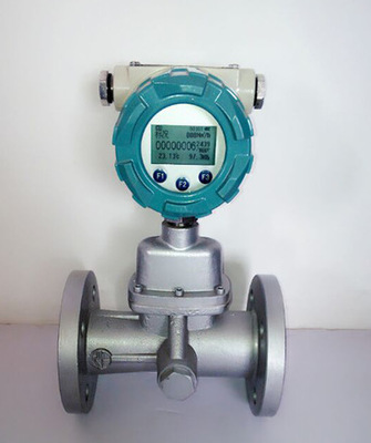 流量传感器的流通剖面类似文丘利管的型线。在入口侧安放一组螺旋型导流叶片,当流体进入流量传感器时,导流叶片迫使流体产生剧烈的旋涡流。当流体进入扩散段时,旋涡流受到回流的作用,开始作二次旋转,形成陀螺式的涡流进动现象。该进动频率与流量大小成正比,不受流体物理性质和密度的影响,检测元件测得流体二次旋转进动频率就能在较宽的流量范围内获得良好的线性度。信号经前置放大器放大、滤波、整形转换为与流速成正比的脉冲信号,然后再与温度、压力等检测信号一起被送往微处理器进行积算处理,最后在液晶显示屏上显示出测量结果(瞬时流量、累积流量及温度、压力数据)。