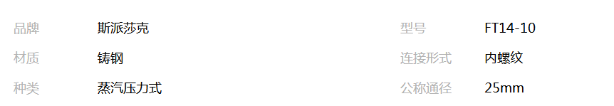 本网页所展示的有关【FT14疏水阀,英国斯派莎克FT14-10铸钢丝口疏水阀_其它阀门_深圳克罗斯阀门公司】的信息/图片/参数等由全球零部件网的会员【深圳克罗斯阀门公司】提供,由全球零部件网会员【深圳克罗斯阀门公司】自行对信息/图片/参数等的真实性、准确性和合法性负责,本平台(本网站)仅提供展示服务,请谨慎交易,因交易而产生的法律关系及法律纠纷由您自行协商解决,本平台(本网站)对此不承担任何责任。您在本网页可以浏览【FT14疏水阀,英国斯派莎克FT14-10铸钢丝口疏水阀_其它阀门_深圳克罗斯阀门公司】有关的信息/图片/价格等及提供【FT14疏水阀,英国斯派莎克FT14-10铸钢丝口疏水阀_其它阀门_深圳克罗斯阀门公司】的商家公司简介、江南(中国)等信息。