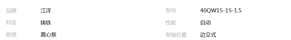 本网页所展示的有关【江洋泵业厂家直销40QW15-15-1.5排污泵_泵_河北祁水泵业有限公司】的信息/图片/参数等由全球零部件网的会员【河北祁水泵业有限公司】提供,由全球零部件网会员【河北祁水泵业有限公司】自行对信息/图片/参数等的真实性、准确性和合法性负责,本平台(本网站)仅提供展示服务,请谨慎交易,因交易而产生的法律关系及法律纠纷由您自行协商解决,本平台(本网站)对此不承担任何责任。您在本网页可以浏览【江洋泵业厂家直销40QW15-15-1.5排污泵_泵_河北祁水泵业有限公司】有关的信息/图片/价格等及提供【江洋泵业厂家直销40QW15-15-1.5排污泵_泵_河北祁水泵业有限公司】的商家公司简介、江南(中国)等信息。