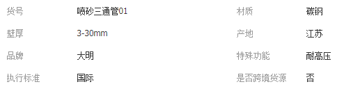 本网页所展示的有关【不锈钢无缝喷砂三通管 便于清洁无缝喷砂三通管 横向型喷砂三通管_管材及管接头_无锡大明阀门自控设备有限公司】的信息/图片/参数等由全球零部件网的会员【无锡大明阀门自控设备有限公司】提供,由全球零部件网会员【无锡大明阀门自控设备有限公司】自行对信息/图片/参数等的真实性、准确性和合法性负责,本平台(本网站)仅提供展示服务,请谨慎交易,因交易而产生的法律关系及法律纠纷由您自行协商解决,本平台(本网站)对此不承担任何责任。您在本网页可以浏览【不锈钢无缝喷砂三通管 便于清洁无缝喷砂三通管 横向型喷砂三通管_管材及管接头_无锡大明阀门自控设备有限公司】有关的信息/图片/价格等及提供【不锈钢无缝喷砂三通管 便于清洁无缝喷砂三通管 横向型喷砂三通管_管材及管接头_无锡大明阀门自控设备有限公司】的商家公司简介、江南(中国)等信息。