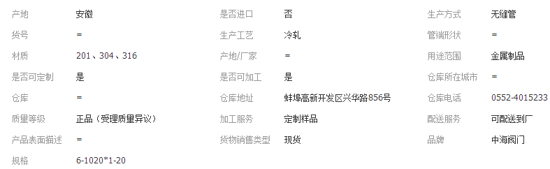 本网页所展示的有关【厂家直销 201 304 316不锈钢管 圆管 规格齐全_管件_蚌埠市中海阀门管道有限公司】的信息/图片/参数等由全球零部件网的会员【蚌埠市中海阀门管道有限公司】提供,由全球零部件网会员【蚌埠市中海阀门管道有限公司】自行对信息/图片/参数等的真实性、准确性和合法性负责,本平台(本网站)仅提供展示服务,请谨慎交易,因交易而产生的法律关系及法律纠纷由您自行协商解决,本平台(本网站)对此不承担任何责任。您在本网页可以浏览【厂家直销 201 304 316不锈钢管 圆管 规格齐全_管件_蚌埠市中海阀门管道有限公司】有关的信息/图片/价格等及提供【厂家直销 201 304 316不锈钢管 圆管 规格齐全_管件_蚌埠市中海阀门管道有限公司】的商家公司简介、江南(中国)等信息。