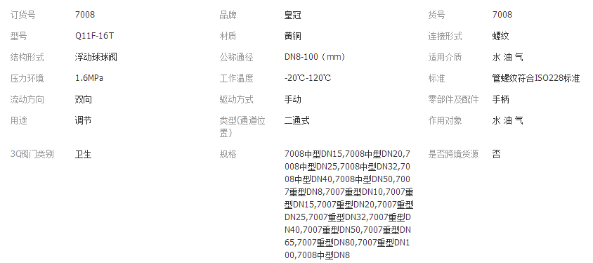 本网页所展示的有关【皇冠黄铜球阀 7008/7007铜球阀 两片式内丝铜球阀 阀门_球阀_湖北化四高压阀门管件有限公司】的信息/图片/参数等由全球零部件网的会员【湖北化四高压阀门管件有限公司】提供,由全球零部件网会员【湖北化四高压阀门管件有限公司】自行对信息/图片/参数等的真实性、准确性和合法性负责,本平台(本网站)仅提供展示服务,请谨慎交易,因交易而产生的法律关系及法律纠纷由您自行协商解决,本平台(本网站)对此不承担任何责任。您在本网页可以浏览【皇冠黄铜球阀 7008/7007铜球阀 两片式内丝铜球阀 阀门_球阀_湖北化四高压阀门管件有限公司】有关的信息/图片/价格等及提供【皇冠黄铜球阀 7008/7007铜球阀 两片式内丝铜球阀 阀门_球阀_湖北化四高压阀门管件有限公司】的商家公司简介、江南(中国)等信息。