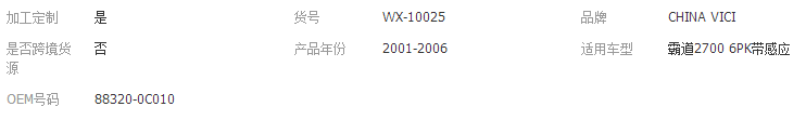 本网页所展示的有关【10S17C丰田霸道2700 6PK带感应汽车空调压缩机 冷气泵_ HVAC汽车_广州伟希汽车空调配件有限公司】的信息/图片/参数等由全球零部件网的会员【广州伟希汽车空调配件有限公司】提供,由全球零部件网会员【广州伟希汽车空调配件有限公司】自行对信息/图片/参数等的真实性、准确性和合法性负责,本平台(本网站)仅提供展示服务,请谨慎交易,因交易而产生的法律关系及法律纠纷由您自行协商解决,本平台(本网站)对此不承担任何责任。您在本网页可以浏览【10S17C丰田霸道2700 6PK带感应汽车空调压缩机 冷气泵_ HVAC汽车_广州伟希汽车空调配件有限公司】有关的信息/图片/价格等及提供【10S17C丰田霸道2700 6PK带感应汽车空调压缩机 冷气泵_ HVAC汽车_广州伟希汽车空调配件有限公司】的商家公司简介、江南(中国)等信息。