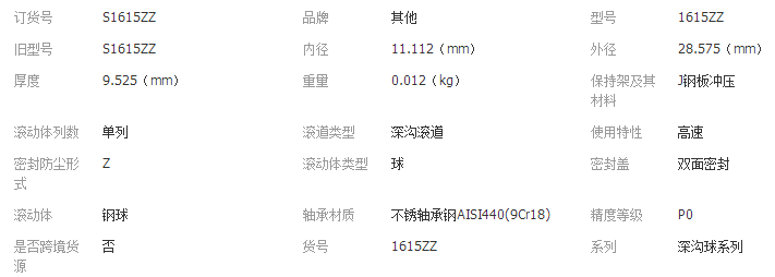 本网页所展示的有关【高精度不锈钢轴承S1615ZZ不生锈轴承 密封轴承防水 耐高温耐腐蚀_轴承_深圳市创亿轴承有限公司 】的信息/图片/参数等由全球零部件网的会员【深圳市创亿轴承有限公司 】提供,由全球零部件网会员【深圳市创亿轴承有限公司 】自行对信息/图片/参数等的真实性、准确性和合法性负责,本平台(本网站)仅提供展示服务,请谨慎交易,因交易而产生的法律关系及法律纠纷由您自行协商解决,本平台(本网站)对此不承担任何责任。您在本网页可以浏览【高精度不锈钢轴承S1615ZZ不生锈轴承 密封轴承防水 耐高温耐腐蚀_轴承_深圳市创亿轴承有限公司 】有关的信息/图片/价格等及提供【高精度不锈钢轴承S1615ZZ不生锈轴承 密封轴承防水 耐高温耐腐蚀_轴承_深圳市创亿轴承有限公司 】的商家公司简介、江南(中国)等信息。