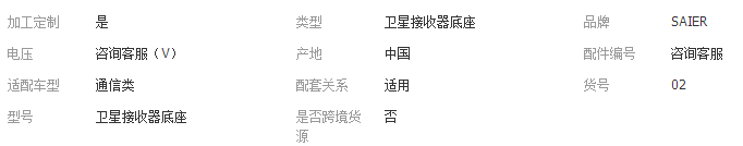 本网页所展示的有关【广东东莞 卫星接收器底座_ HVAC汽车_东莞市赛尔精密五金有限公司】的信息/图片/参数等由全球零部件网的会员【东莞市赛尔精密五金有限公司】提供,由全球零部件网会员【东莞市赛尔精密五金有限公司】自行对信息/图片/参数等的真实性、准确性和合法性负责,本平台(本网站)仅提供展示服务,请谨慎交易,因交易而产生的法律关系及法律纠纷由您自行协商解决,本平台(本网站)对此不承担任何责任。您在本网页可以浏览【广东东莞 卫星接收器底座_ HVAC汽车_东莞市赛尔精密五金有限公司】有关的信息/图片/价格等及提供【广东东莞 卫星接收器底座_ HVAC汽车_东莞市赛尔精密五金有限公司】的商家公司简介、江南(中国)等信息。