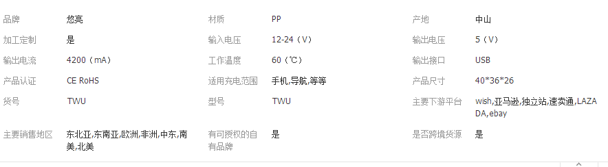 本网页所展示的有关【供应4.2A双USB车载充电器车载点烟器插座双孔一拖二车载手机充电_ HVAC汽车_中山市悠悠电子科技有限公司 】的信息/图片/参数等由全球零部件网的会员【中山市悠悠电子科技有限公司 】提供,由全球零部件网会员【中山市悠悠电子科技有限公司 】自行对信息/图片/参数等的真实性、准确性和合法性负责,本平台(本网站)仅提供展示服务,请谨慎交易,因交易而产生的法律关系及法律纠纷由您自行协商解决,本平台(本网站)对此不承担任何责任。您在本网页可以浏览【供应4.2A双USB车载充电器车载点烟器插座双孔一拖二车载手机充电_ HVAC汽车_中山市悠悠电子科技有限公司 】有关的信息/图片/价格等及提供【供应4.2A双USB车载充电器车载点烟器插座双孔一拖二车载手机充电_ HVAC汽车_中山市悠悠电子科技有限公司 】的商家公司简介、江南(中国)等信息。