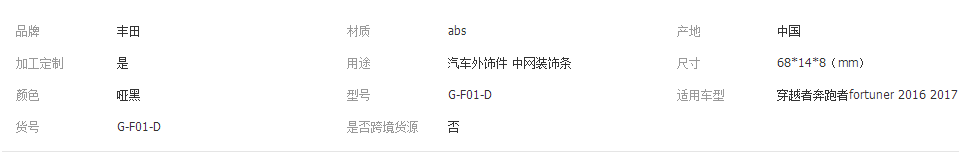 本网页所展示的有关【穿越者fortuner 2016 2017 电镀饰条 ABS前机盖饰条 哑黑中网饰条_ HVAC汽车_广州泰帅汽车用品有限公司】的信息/图片/参数等由全球零部件网的会员【广州泰帅汽车用品有限公司】提供,由全球零部件网会员【广州泰帅汽车用品有限公司】自行对信息/图片/参数等的真实性、准确性和合法性负责,本平台(本网站)仅提供展示服务,请谨慎交易,因交易而产生的法律关系及法律纠纷由您自行协商解决,本平台(本网站)对此不承担任何责任。您在本网页可以浏览【穿越者fortuner 2016 2017 电镀饰条 ABS前机盖饰条 哑黑中网饰条_ HVAC汽车_广州泰帅汽车用品有限公司】有关的信息/图片/价格等及提供【穿越者fortuner 2016 2017 电镀饰条 ABS前机盖饰条 哑黑中网饰条_ HVAC汽车_广州泰帅汽车用品有限公司】的商家公司简介、江南(中国)等信息。