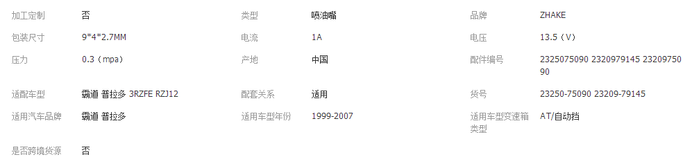 本网页所展示的有关【霸道 普拉多 3RZFE RZJ12 喷油嘴 23250-75090 23209-79145喷油嘴_ HVAC汽车_广州摩纹尼汽车配件有限公司 】的信息/图片/参数等由全球零部件网的会员【广州摩纹尼汽车配件有限公司 】提供,由全球零部件网会员【广州摩纹尼汽车配件有限公司 】自行对信息/图片/参数等的真实性、准确性和合法性负责,本平台(本网站)仅提供展示服务,请谨慎交易,因交易而产生的法律关系及法律纠纷由您自行协商解决,本平台(本网站)对此不承担任何责任。您在本网页可以浏览【霸道 普拉多 3RZFE RZJ12 喷油嘴 23250-75090 23209-79145喷油嘴_ HVAC汽车_广州摩纹尼汽车配件有限公司 】有关的信息/图片/价格等及提供【霸道 普拉多 3RZFE RZJ12 喷油嘴 23250-75090 23209-79145喷油嘴_ HVAC汽车_广州摩纹尼汽车配件有限公司 】的商家公司简介、江南(中国)等信息。