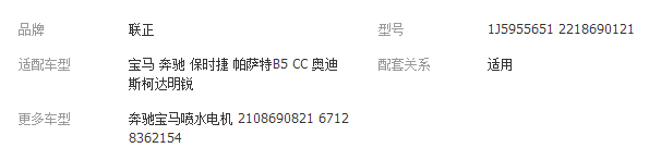 本网页所展示的有关【【厂家直销】 喷水马达 出口外贸 适用于大众奔驰宝马系列配件_ HVAC汽车_瑞安市联正汽车配件厂】的信息/图片/参数等由全球零部件网的会员【瑞安市联正汽车配件厂】提供,由全球零部件网会员【瑞安市联正汽车配件厂】自行对信息/图片/参数等的真实性、准确性和合法性负责,本平台(本网站)仅提供展示服务,请谨慎交易,因交易而产生的法律关系及法律纠纷由您自行协商解决,本平台(本网站)对此不承担任何责任。您在本网页可以浏览【【厂家直销】 喷水马达 出口外贸 适用于大众奔驰宝马系列配件_ HVAC汽车_瑞安市联正汽车配件厂】有关的信息/图片/价格等及提供【【厂家直销】 喷水马达 出口外贸 适用于大众奔驰宝马系列配件_ HVAC汽车_瑞安市联正汽车配件厂】的商家公司简介、江南(中国)等信息。