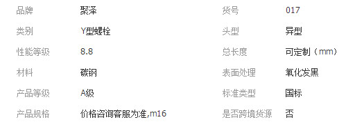 本网页所展示的有关【本厂直销 高强度Y型螺栓 多种型号碳钢发黑Y型螺丝_ HVAC汽车_邯郸市聚泽紧固件制造有限公司】的信息/图片/参数等由全球零部件网的会员【邯郸市聚泽紧固件制造有限公司】提供,由全球零部件网会员【邯郸市聚泽紧固件制造有限公司】自行对信息/图片/参数等的真实性、准确性和合法性负责,本平台(本网站)仅提供展示服务,请谨慎交易,因交易而产生的法律关系及法律纠纷由您自行协商解决,本平台(本网站)对此不承担任何责任。您在本网页可以浏览【本厂直销 高强度Y型螺栓 多种型号碳钢发黑Y型螺丝_ HVAC汽车_邯郸市聚泽紧固件制造有限公司】有关的信息/图片/价格等及提供【本厂直销 高强度Y型螺栓 多种型号碳钢发黑Y型螺丝_ HVAC汽车_邯郸市聚泽紧固件制造有限公司】的商家公司简介、江南(中国)等信息。