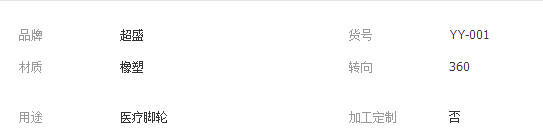 本网页所展示的有关【医疗脚轮 5寸全塑静音脚轮 聚氨酯 耐磨万向静音轮_综合配件_文安县超胜汽车配件有限公司】的信息/图片/参数等由全球零部件网的会员【文安县超胜汽车配件有限公司】提供,由全球零部件网会员【文安县超胜汽车配件有限公司】自行对信息/图片/参数等的真实性、准确性和合法性负责,本平台(本网站)仅提供展示服务,请谨慎交易,因交易而产生的法律关系及法律纠纷由您自行协商解决,本平台(本网站)对此不承担任何责任。您在本网页可以浏览【医疗脚轮 5寸全塑静音脚轮 聚氨酯 耐磨万向静音轮_综合配件_文安县超胜汽车配件有限公司】有关的信息/图片/价格等及提供【医疗脚轮 5寸全塑静音脚轮 聚氨酯 耐磨万向静音轮_综合配件_文安县超胜汽车配件有限公司】的商家公司简介、江南(中国)等信息。