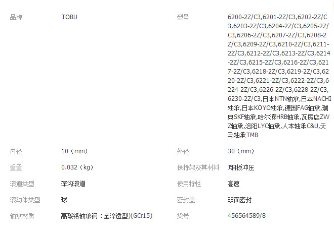 本网页所展示的有关【TOBU深沟球轴承6200系列电机轴承日本技术 德国工艺高精密 高转速_轴承_东莞市东武轴承有限公司】的信息/图片/参数等由全球零部件网的会员【东莞市东武轴承有限公司】提供,由全球零部件网会员【东莞市东武轴承有限公司】自行对信息/图片/参数等的真实性、准确性和合法性负责,本平台(本网站)仅提供展示服务,请谨慎交易,因交易而产生的法律关系及法律纠纷由您自行协商解决,本平台(本网站)对此不承担任何责任。您在本网页可以浏览【TOBU深沟球轴承6200系列电机轴承日本技术 德国工艺高精密 高转速_轴承_东莞市东武轴承有限公司】有关的信息/图片/价格等及提供【TOBU深沟球轴承6200系列电机轴承日本技术 德国工艺高精密 高转速_轴承_东莞市东武轴承有限公司】的商家公司简介、江南(中国)等信息。