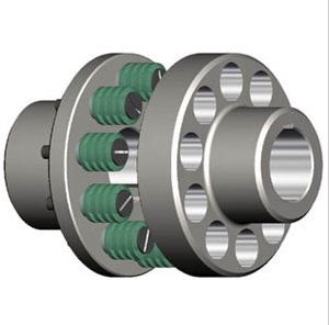 量较少,弹性较弱。弹性套柱销联轴器是依靠柱销组的锁紧力而产生于接触面的摩擦力矩,并压缩橡胶弹性套来传递转矩。适用于高速,安装底座刚性好、对中精度较高、冲击载荷不 大、对减振要求不高的中小功率水泵等传动。