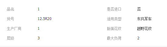 本网页所展示的有关【原装正品A级东风军车EQ2102N双星12.5R20轮胎越野花纹_轮胎_十堰市高科工贸有限公司】的信息/图片/参数等由全球零部件网的会员【十堰市高科工贸有限公司】提供,由全球零部件网会员【十堰市高科工贸有限公司】自行对信息/图片/参数等的真实性、准确性和合法性负责,本平台(本网站)仅提供展示服务,请谨慎交易,因交易而产生的法律关系及法律纠纷由您自行协商解决,本平台(本网站)对此不承担任何责任。您在本网页可以浏览【原装正品A级东风军车EQ2102N双星12.5R20轮胎越野花纹_轮胎_十堰市高科工贸有限公司】有关的信息/图片/价格等及提供【原装正品A级东风军车EQ2102N双星12.5R20轮胎越野花纹_轮胎_十堰市高科工贸有限公司】的商家公司简介、江南(中国)等信息。