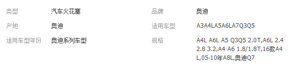 本网页所展示的有关【奥迪A3A4LA5A6LA7Q3Q5原装 火花塞原厂1.8T2.0T2.4T 2.8T德国原装_火花塞_北京欣欣旺迪商贸有限责任公司】的信息/图片/参数等由全球零部件网的会员【北京欣欣旺迪商贸有限责任公司】提供,由全球零部件网会员【北京欣欣旺迪商贸有限责任公司】自行对信息/图片/参数等的真实性、准确性和合法性负责,本平台(本网站)仅提供展示服务,请谨慎交易,因交易而产生的法律关系及法律纠纷由您自行协商解决,本平台(本网站)对此不承担任何责任。您在本网页可以浏览【奥迪A3A4LA5A6LA7Q3Q5原装 火花塞原厂1.8T2.0T2.4T 2.8T德国原装_火花塞_北京欣欣旺迪商贸有限责任公司】有关的信息/图片/价格等及提供【奥迪A3A4LA5A6LA7Q3Q5原装 火花塞原厂1.8T2.0T2.4T 2.8T德国原装_火花塞_北京欣欣旺迪商贸有限责任公司】的商家公司简介、江南(中国)等信息。