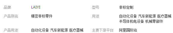 本网页所展示的有关【专业非标零件加工厂 CNC铝件加工 医疗行业 汽车 自动化 零件加工_原材料_上海莱译机械设备有限公司】的信息/图片/参数等由全球零部件网的会员【上海莱译机械设备有限公司】提供,由全球零部件网会员【上海莱译机械设备有限公司】自行对信息/图片/参数等的真实性、准确性和合法性负责,本平台(本网站)仅提供展示服务,请谨慎交易,因交易而产生的法律关系及法律纠纷由您自行协商解决,本平台(本网站)对此不承担任何责任。您在本网页可以浏览【专业非标零件加工厂 CNC铝件加工 医疗行业 汽车 自动化 零件加工_原材料_上海莱译机械设备有限公司】有关的信息/图片/价格等及提供【专业非标零件加工厂 CNC铝件加工 医疗行业 汽车 自动化 零件加工_原材料_上海莱译机械设备有限公司】的商家公司简介、江南(中国)等信息。