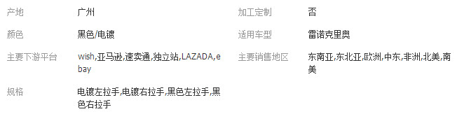 本网页所展示的有关【跨境ebay亚马逊速卖通热卖雷诺克里奥内拉手电镀/黑色左右_原材料_深圳市深立辉商贸有限公司】的信息/图片/参数等由全球零部件网的会员【深圳市深立辉商贸有限公司】提供,由全球零部件网会员【深圳市深立辉商贸有限公司】自行对信息/图片/参数等的真实性、准确性和合法性负责,本平台(本网站)仅提供展示服务,请谨慎交易,因交易而产生的法律关系及法律纠纷由您自行协商解决,本平台(本网站)对此不承担任何责任。您在本网页可以浏览【跨境ebay亚马逊速卖通热卖雷诺克里奥内拉手电镀/黑色左右_原材料_深圳市深立辉商贸有限公司】有关的信息/图片/价格等及提供【跨境ebay亚马逊速卖通热卖雷诺克里奥内拉手电镀/黑色左右_原材料_深圳市深立辉商贸有限公司】的商家公司简介、江南(中国)等信息。