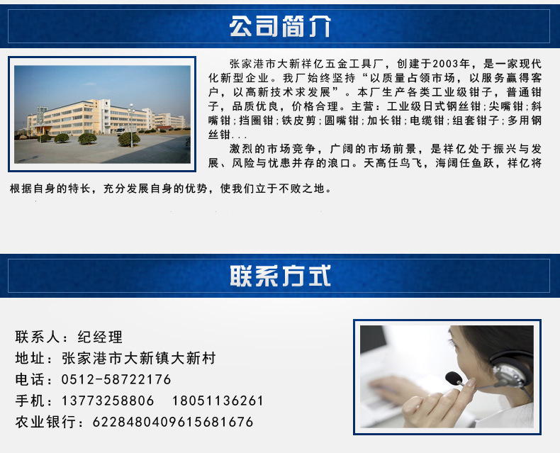 本网页所展示的有关【厂家直销 4.5寸钢丝钳,DIY手工迷你钳子_钳子类_张家港市大新祥亿五金工具厂】的信息/图片/参数等由全球零部件网的会员【张家港市大新祥亿五金工具厂】提供,由全球零部件网会员【张家港市大新祥亿五金工具厂】自行对信息/图片/参数等的真实性、准确性和合法性负责,本平台(本网站)仅提供展示服务,请谨慎交易,因交易而产生的法律关系及法律纠纷由您自行协商解决,本平台(本网站)对此不承担任何责任。您在本网页可以浏览【厂家直销 4.5寸钢丝钳,DIY手工迷你钳子_钳子类_张家港市大新祥亿五金工具厂】有关的信息/图片/价格等及提供【厂家直销 4.5寸钢丝钳,DIY手工迷你钳子_钳子类_张家港市大新祥亿五金工具厂】的商家公司简介、江南(中国)等信息。
