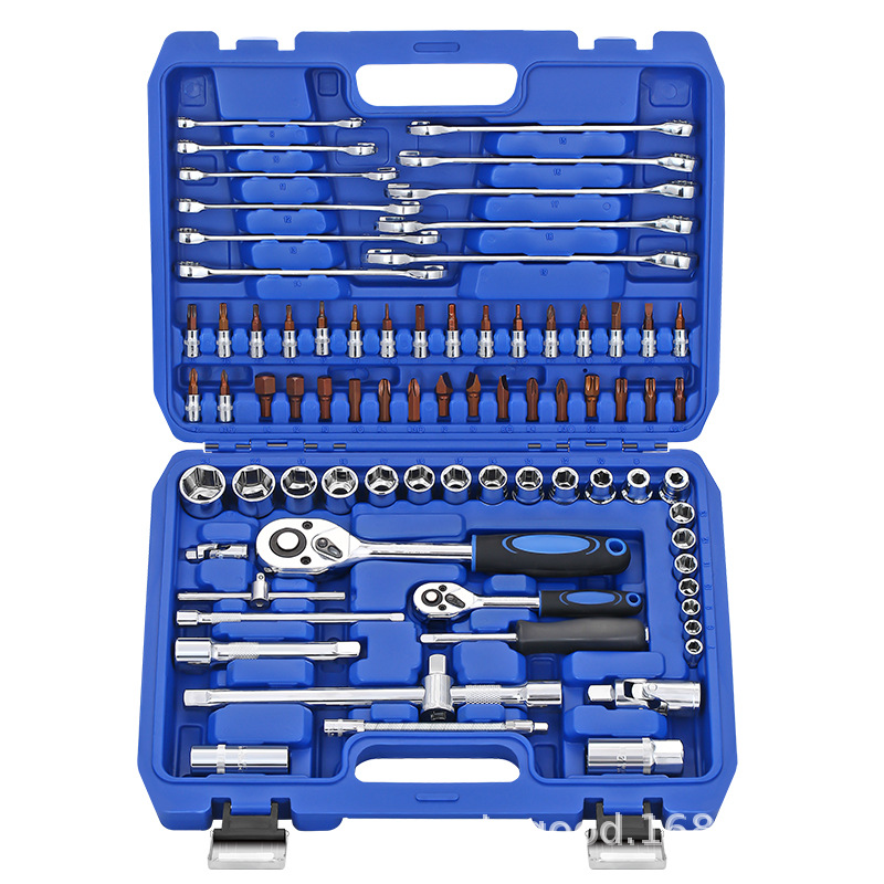 108件套厂家货源蓝盒72齿弯柄棘轮扳手套筒套装 五金修车工具