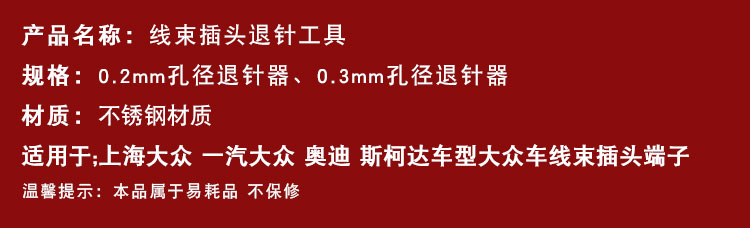 本网页所展示的有关【适用大众奥迪退针器汽车线束插头端子拆装卸工具挑针解锁取出钥匙_汽修工具与设备_上海如协汽车用品有限公司】的信息/图片/参数等由全球零部件网的会员【上海如协汽车用品有限公司】提供,由全球零部件网会员【上海如协汽车用品有限公司】自行对信息/图片/参数等的真实性、准确性和合法性负责,本平台(本网站)仅提供展示服务,请谨慎交易,因交易而产生的法律关系及法律纠纷由您自行协商解决,本平台(本网站)对此不承担任何责任。您在本网页可以浏览【适用大众奥迪退针器汽车线束插头端子拆装卸工具挑针解锁取出钥匙_汽修工具与设备_上海如协汽车用品有限公司】有关的信息/图片/价格等及提供【适用大众奥迪退针器汽车线束插头端子拆装卸工具挑针解锁取出钥匙_汽修工具与设备_上海如协汽车用品有限公司】的商家公司简介、江南(中国)等信息。