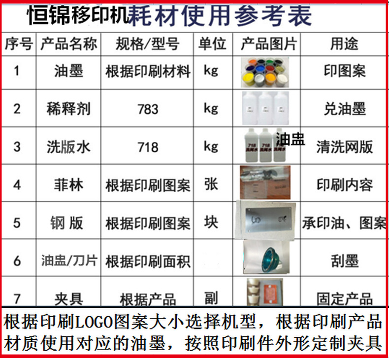 | 移印机类型 | 印刷颜色 | 应用领域 | |||