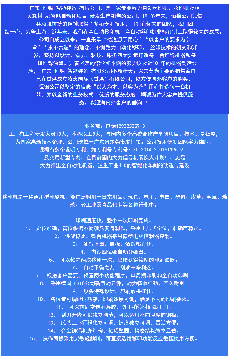 本网页所展示的有关【衣服印字机小型 商标单色LOGO服装移印机工厂生产工厂_移印机_广东恒锦智能装备有限公司】的信息/图片/参数等由全球零部件网的会员【广东恒锦智能装备有限公司】提供,由全球零部件网会员【广东恒锦智能装备有限公司】自行对信息/图片/参数等的真实性、准确性和合法性负责,本平台(本网站)仅提供展示服务,请谨慎交易,因交易而产生的法律关系及法律纠纷由您自行协商解决,本平台(本网站)对此不承担任何责任。您在本网页可以浏览【衣服印字机小型 商标单色LOGO服装移印机工厂生产工厂_移印机_广东恒锦智能装备有限公司】有关的信息/图片/价格等及提供【衣服印字机小型 商标单色LOGO服装移印机工厂生产工厂_移印机_广东恒锦智能装备有限公司】的商家公司简介、江南(中国)等信息。