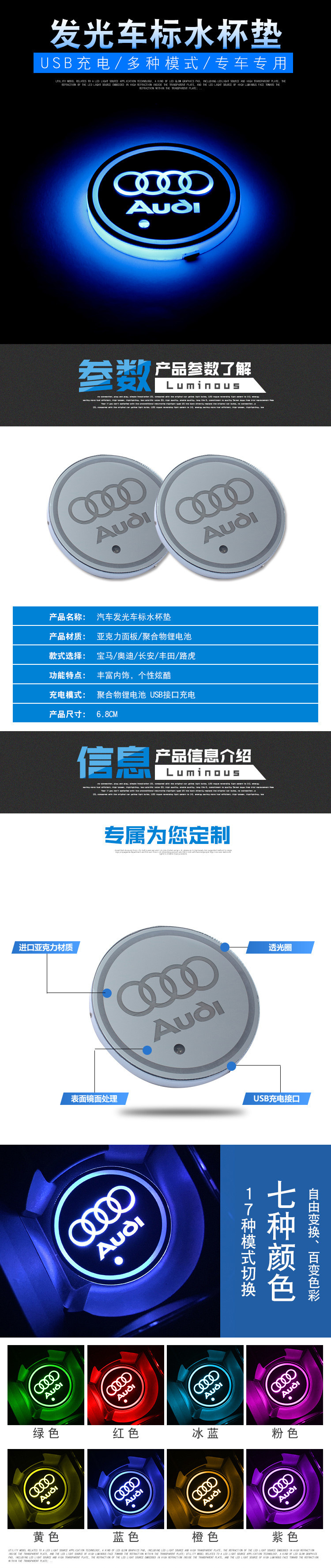 LED水杯灯/防滑垫 车顶灯 阅读灯 示宽灯 大灯 尾灯 牌照灯 雾灯 警示灯 转向灯 氛围灯 迎宾灯 汽车膜 汽车通用产品