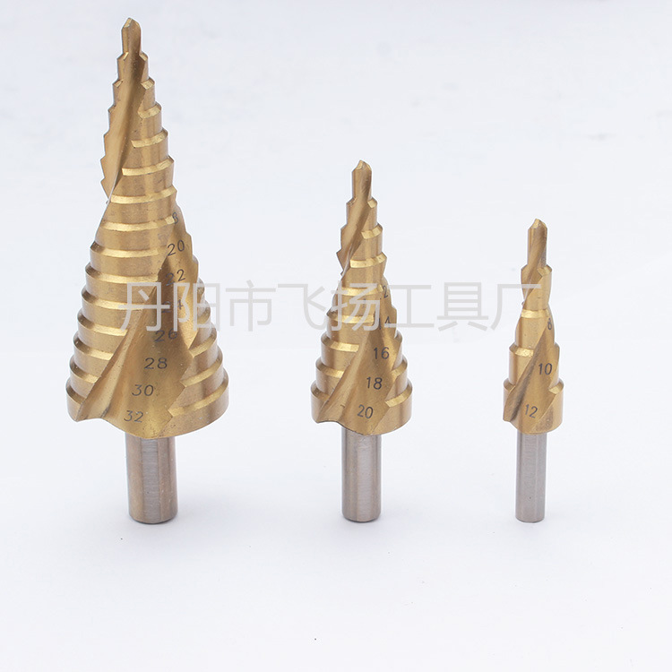 1、独特的阶梯构造,一只钻头能开多种规格尺寸孔径,一只阶梯钻抵上一盒钻头。