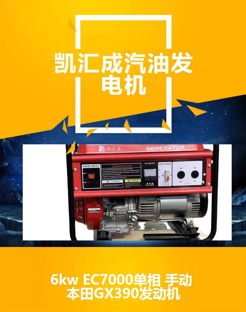 6.5kw 凯汇成汽油发电机组 本田动力 车载汽油发电机 EC7000