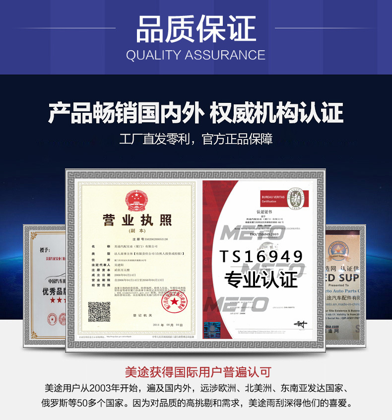 本网页所展示的有关【美途雨刷器雨刮器适用90%车型高档汽车无骨雨刷雨刮片刮雨器厂家_雨刷系统_美途汽配实业(厦门)有限公司】的信息/图片/参数等由全球零部件网的会员【美途汽配实业(厦门)有限公司】提供,由全球零部件网会员【美途汽配实业(厦门)有限公司】自行对信息/图片/参数等的真实性、准确性和合法性负责,本平台(本网站)仅提供展示服务,请谨慎交易,因交易而产生的法律关系及法律纠纷由您自行协商解决,本平台(本网站)对此不承担任何责任。您在本网页可以浏览【美途雨刷器雨刮器适用90%车型高档汽车无骨雨刷雨刮片刮雨器厂家_雨刷系统_美途汽配实业(厦门)有限公司】有关的信息/图片/价格等及提供【美途雨刷器雨刮器适用90%车型高档汽车无骨雨刷雨刮片刮雨器厂家_雨刷系统_美途汽配实业(厦门)有限公司】的商家公司简介、江南(中国)等信息。