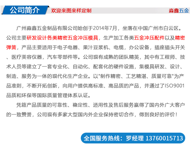 本网页所展示的有关【304不锈钢五金冲压件316不锈钢钣金定做固定安装板拉伸件定制厂家_冲压件_广州淼鑫五金制品有限公司】的信息/图片/参数等由全球零部件网的会员【广州淼鑫五金制品有限公司】提供,由全球零部件网会员【广州淼鑫五金制品有限公司】自行对信息/图片/参数等的真实性、准确性和合法性负责,本平台(本网站)仅提供展示服务,请谨慎交易,因交易而产生的法律关系及法律纠纷由您自行协商解决,本平台(本网站)对此不承担任何责任。您在本网页可以浏览【304不锈钢五金冲压件316不锈钢钣金定做固定安装板拉伸件定制厂家_冲压件_广州淼鑫五金制品有限公司】有关的信息/图片/价格等及提供【304不锈钢五金冲压件316不锈钢钣金定做固定安装板拉伸件定制厂家_冲压件_广州淼鑫五金制品有限公司】的商家公司简介、江南(中国)等信息。
