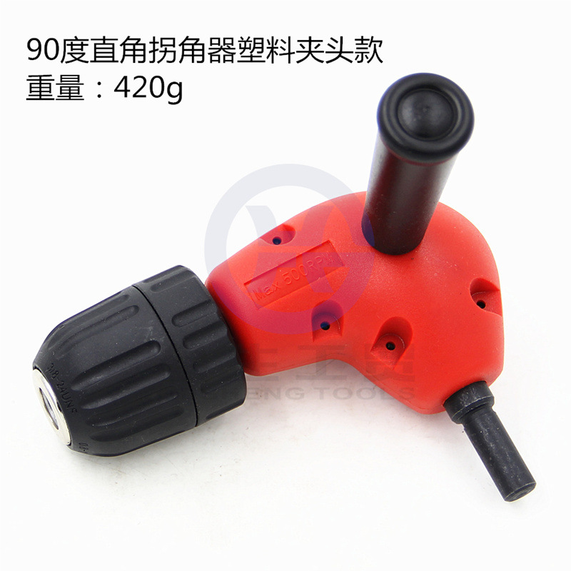 手枪钻作业时难免会遇到狭窄的空间,此拐角器可以让电钻动力拐90度弯,到达你想操作的空间完成钻孔作业,带扶手,左右手可以根据需求安装!