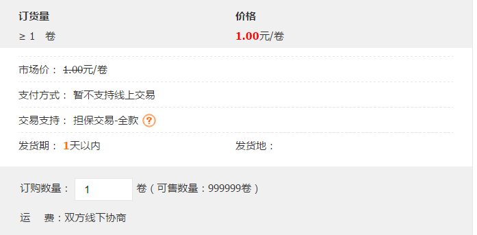 产品价格¥1.00元/卷