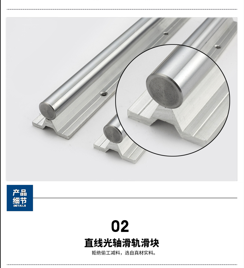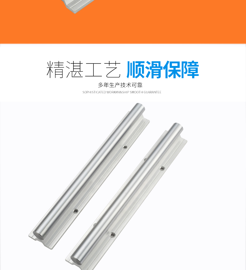 导轨材质:光轴45#高碳钢、表面镀铬、淬火硬轴 铝托导轨