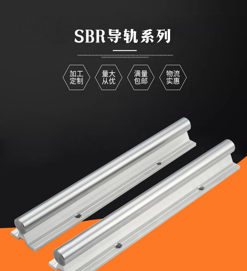 SBR系列导轨是由箱式直线轴承、高硬度轴及防偏斜铝轨级成的滑动单元。硬度轴与底座铝轨安装所需的螺孔是在轴硬化处理后进行钻削加工,保证了产品的精度。SBR系列产品造价低廉、生产周期短、易于安装等特性,已成为方型直线导轨的替代产品。