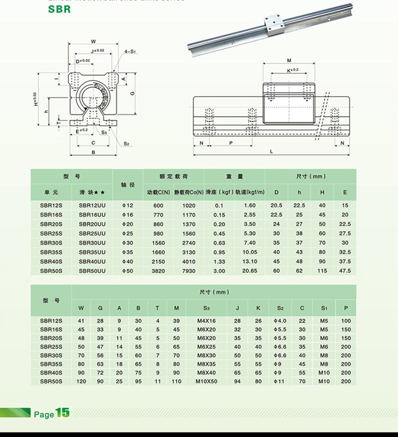SBR导轨型号:SBR-C10/SBR-C12/SBR-C13/SBR-C16/SBR-C20/SBR-C25/SBR-C30/SBR-C35/SBR-C40/SBR-C50
