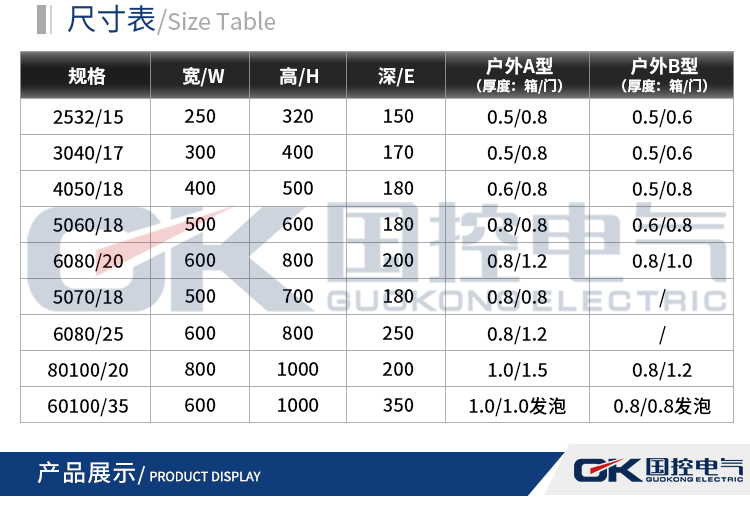 | 壳体防护等级 | 面盖材质 | 规格尺寸 |