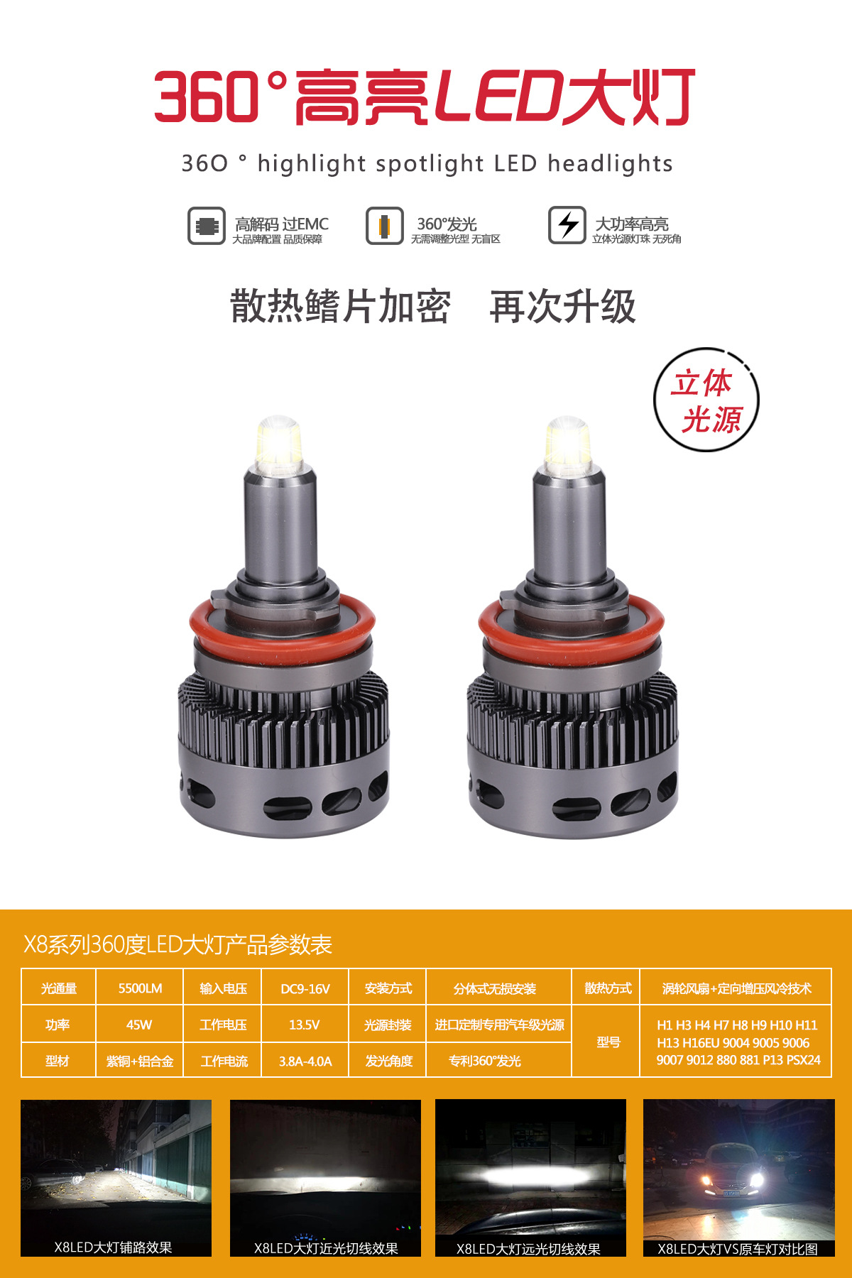 多面立体发光的优势:不需要调光,铺路均匀,高亮度,搭配透镜(鱼眼)效果更佳!