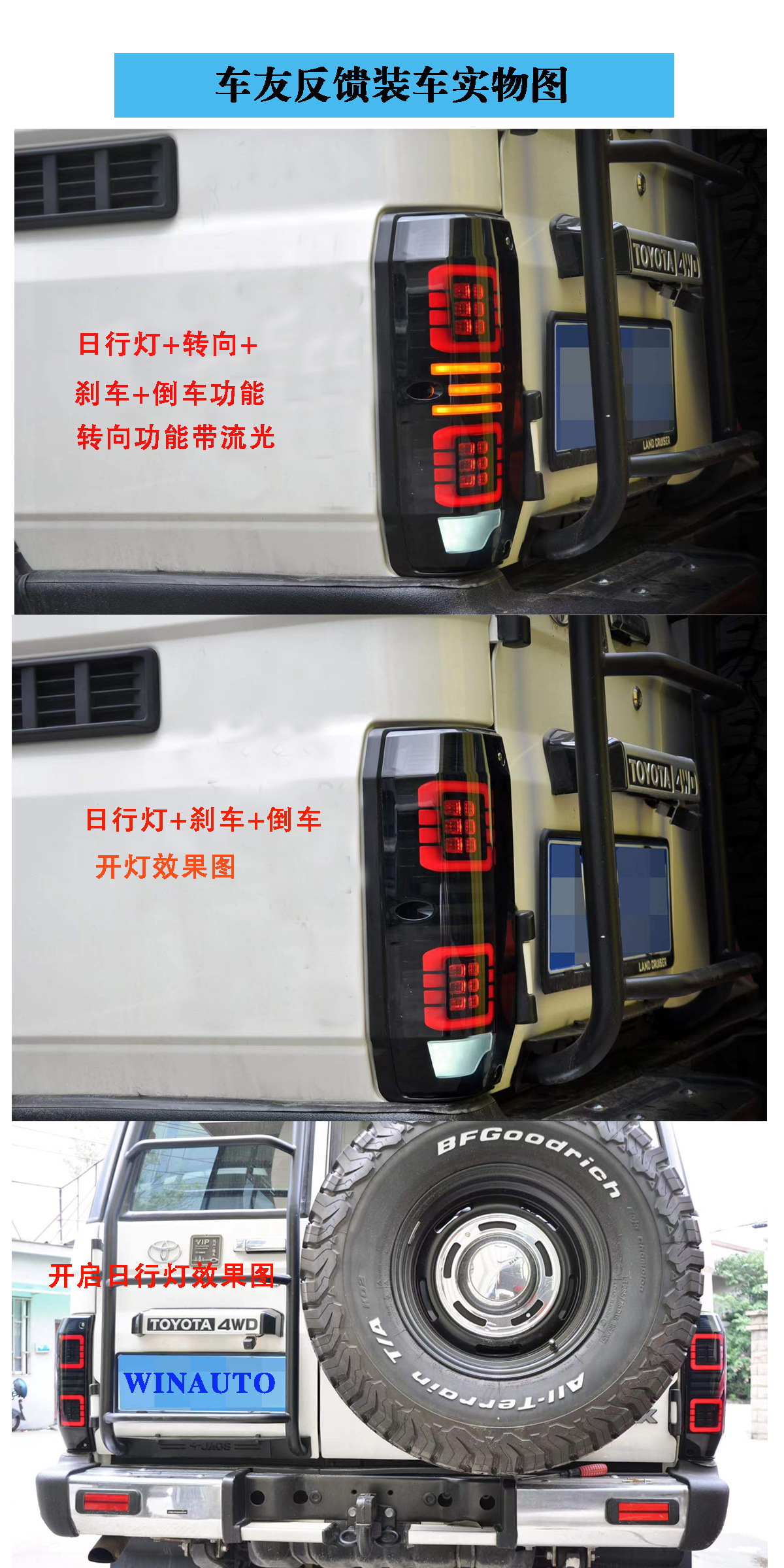 适用于1984 - 2021年 丰田 LC76 熏黑款尾灯改装刹车灯后雾灯专用