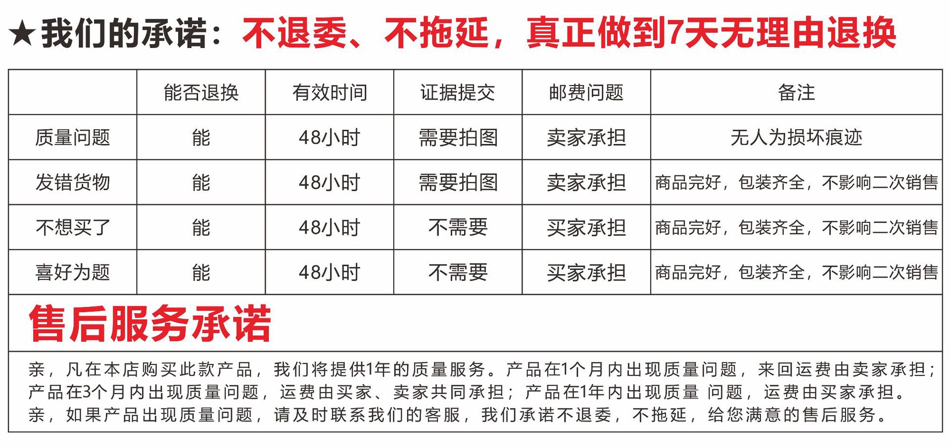 如产品有质量问题,按照淘宝规则,我们无条件承担退换货运费,(我司一律拒收顺丰等快递到付件)