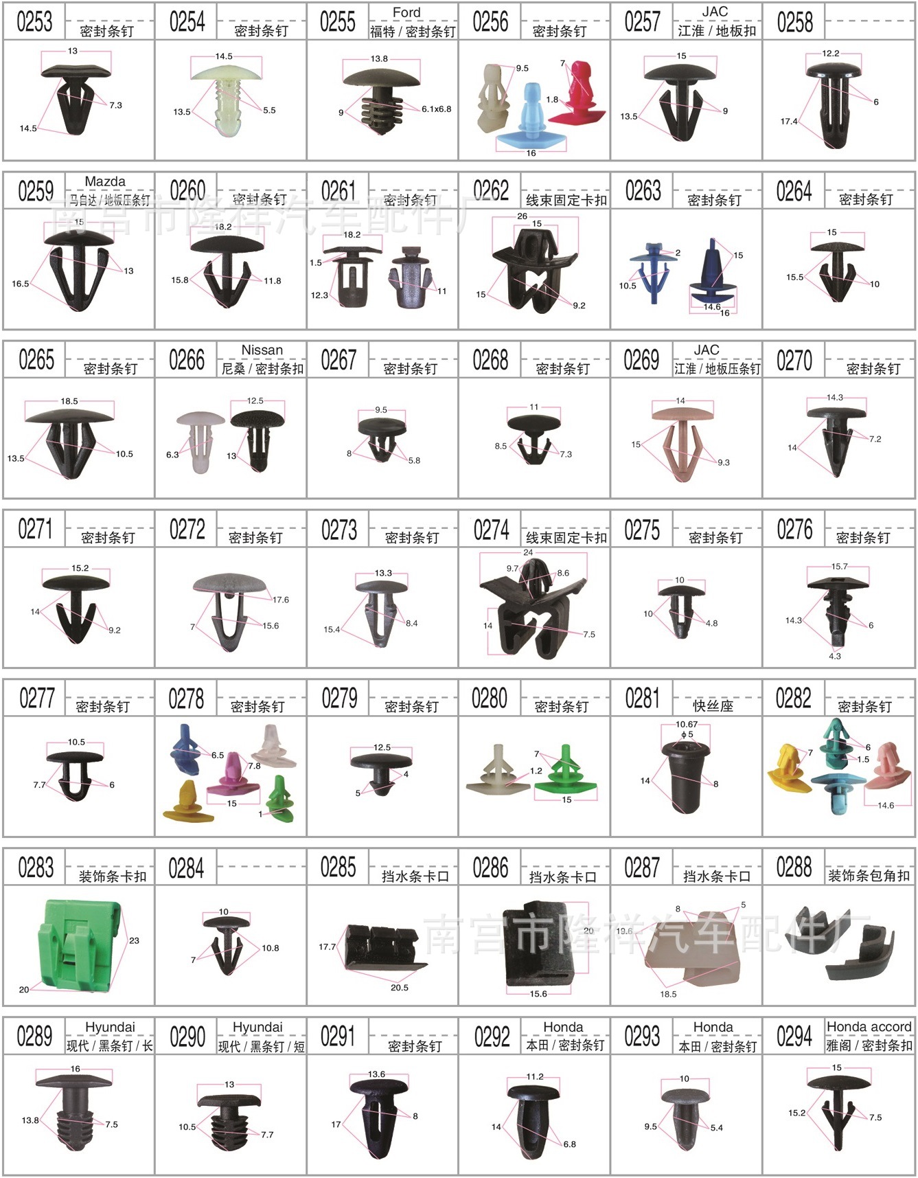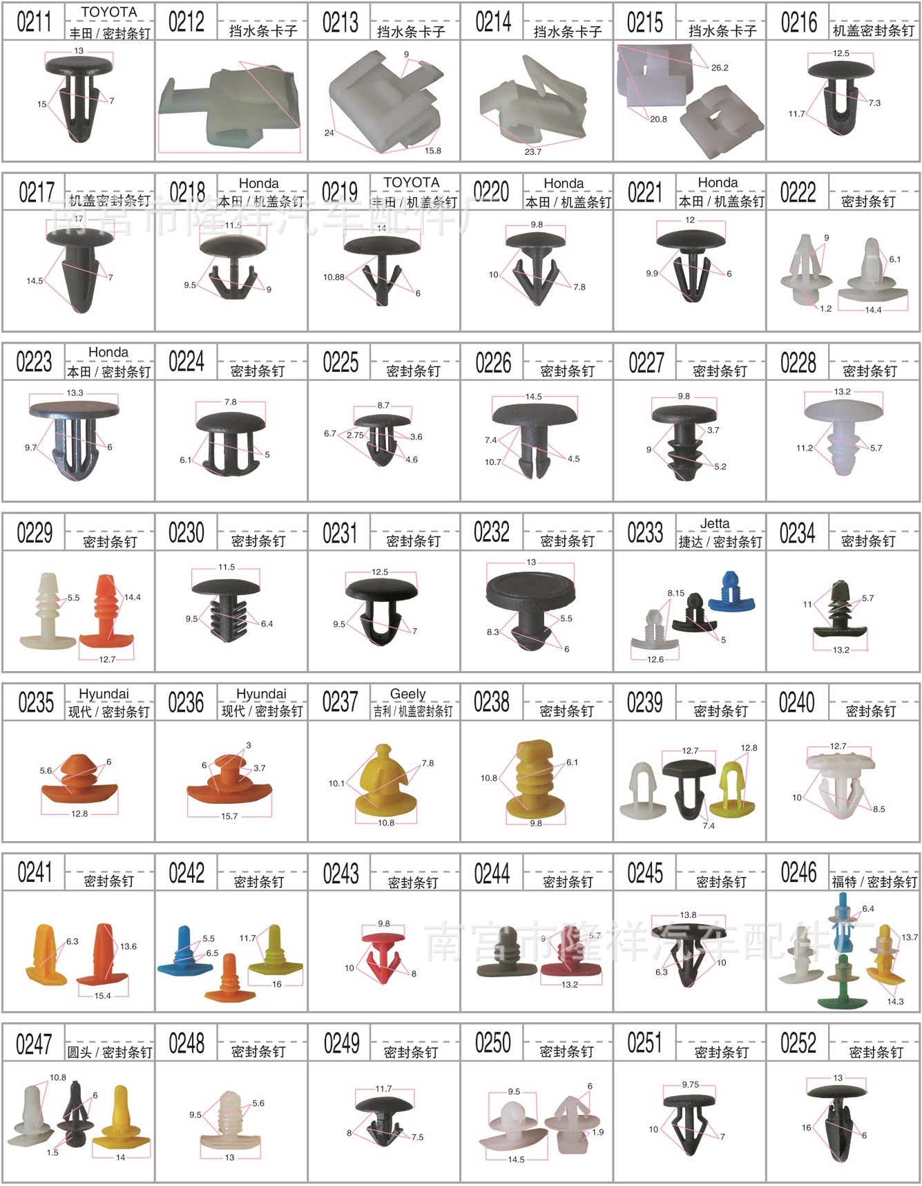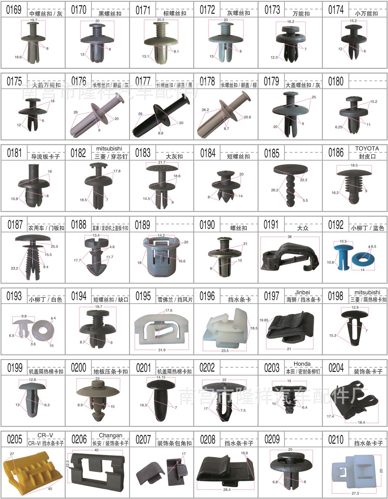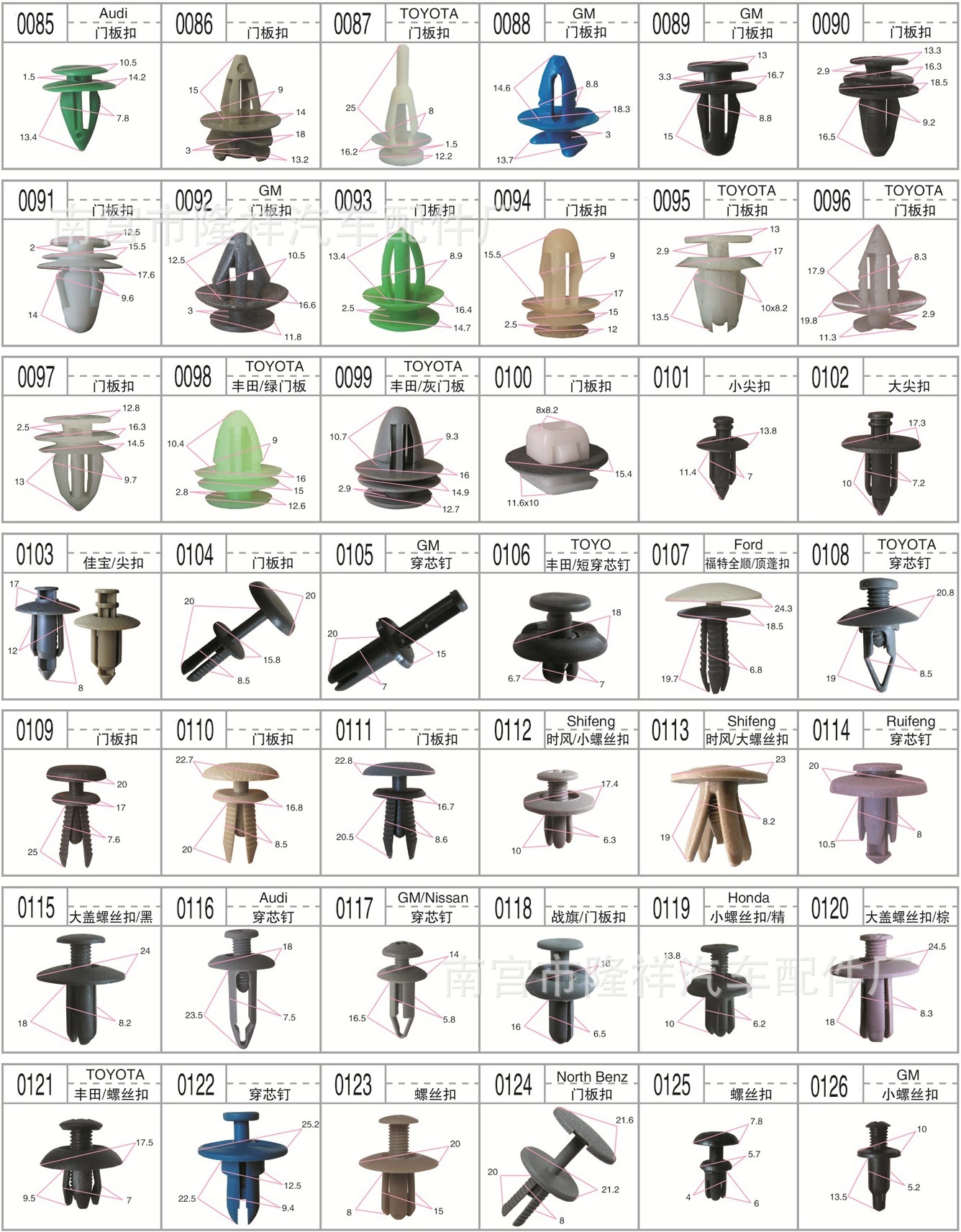 门板卡扣系列 顶蓬卡扣系列 膨胀螺丝系列 封皮卡扣系列 穿芯钉系列 密封条钉系列 线/管束固定夹 隔热棉卡扣 玻璃托卡扣 支撑…