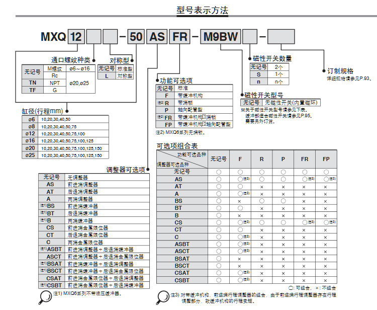 | 动作方式 | 缸径 | 标准行程 | |||