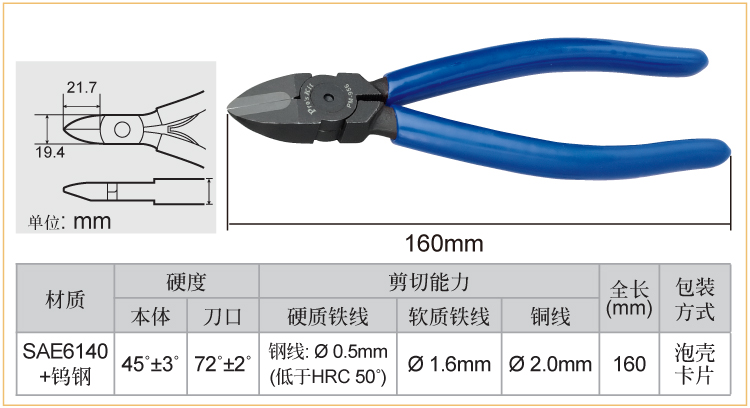 | 柄部材质 | 剪切直径 | 钳头材质 | |||