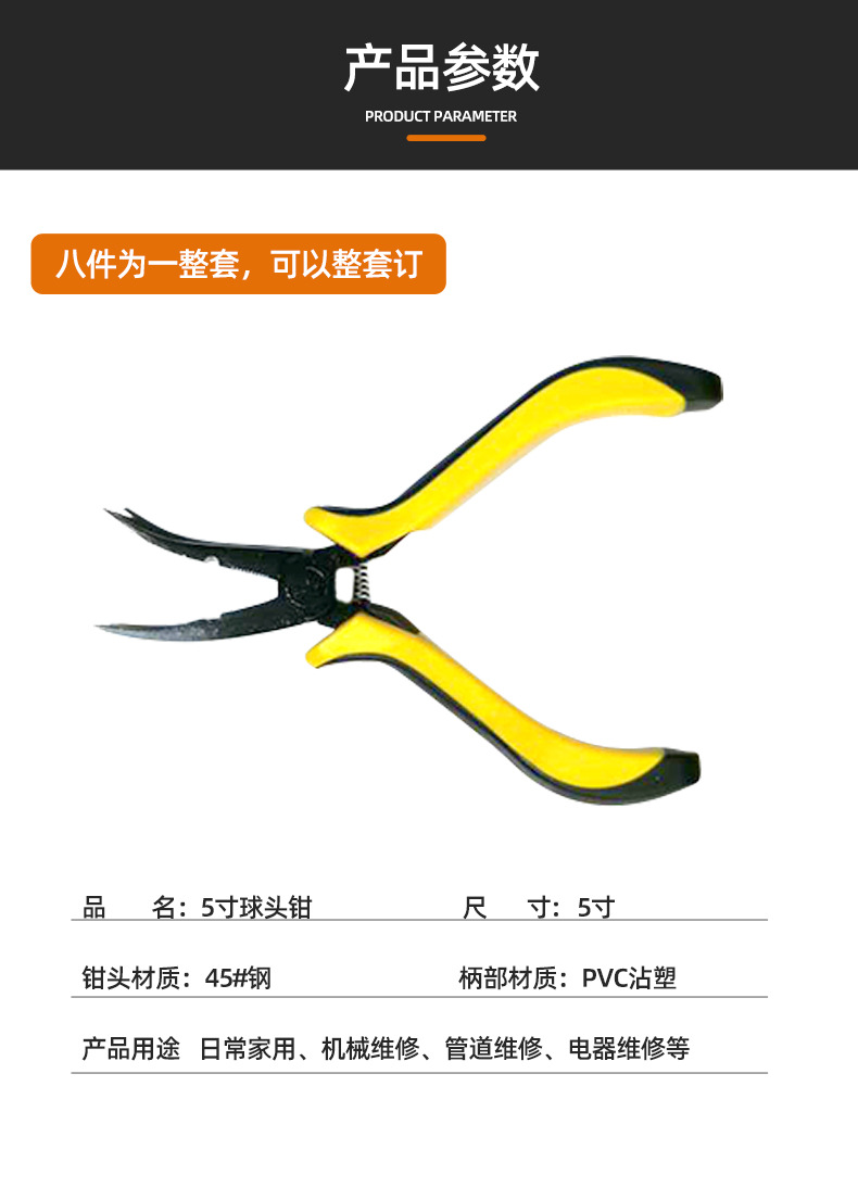 本网页所展示的有关【5寸碳钢精密球头钳 拉杆拆卸钳子车船航模工具 斜口钳 球头钳子_钳子类_张家港新乐五金工具有限公司】的信息/图片/参数等由全球零部件网的会员【张家港新乐五金工具有限公司】提供,由全球零部件网会员【张家港新乐五金工具有限公司】自行对信息/图片/参数等的真实性、准确性和合法性负责,本平台(本网站)仅提供展示服务,请谨慎交易,因交易而产生的法律关系及法律纠纷由您自行协商解决,本平台(本网站)对此不承担任何责任。您在本网页可以浏览【5寸碳钢精密球头钳 拉杆拆卸钳子车船航模工具 斜口钳 球头钳子_钳子类_张家港新乐五金工具有限公司】有关的信息/图片/价格等及提供【5寸碳钢精密球头钳 拉杆拆卸钳子车船航模工具 斜口钳 球头钳子_钳子类_张家港新乐五金工具有限公司】的商家公司简介、江南(中国)等信息。
