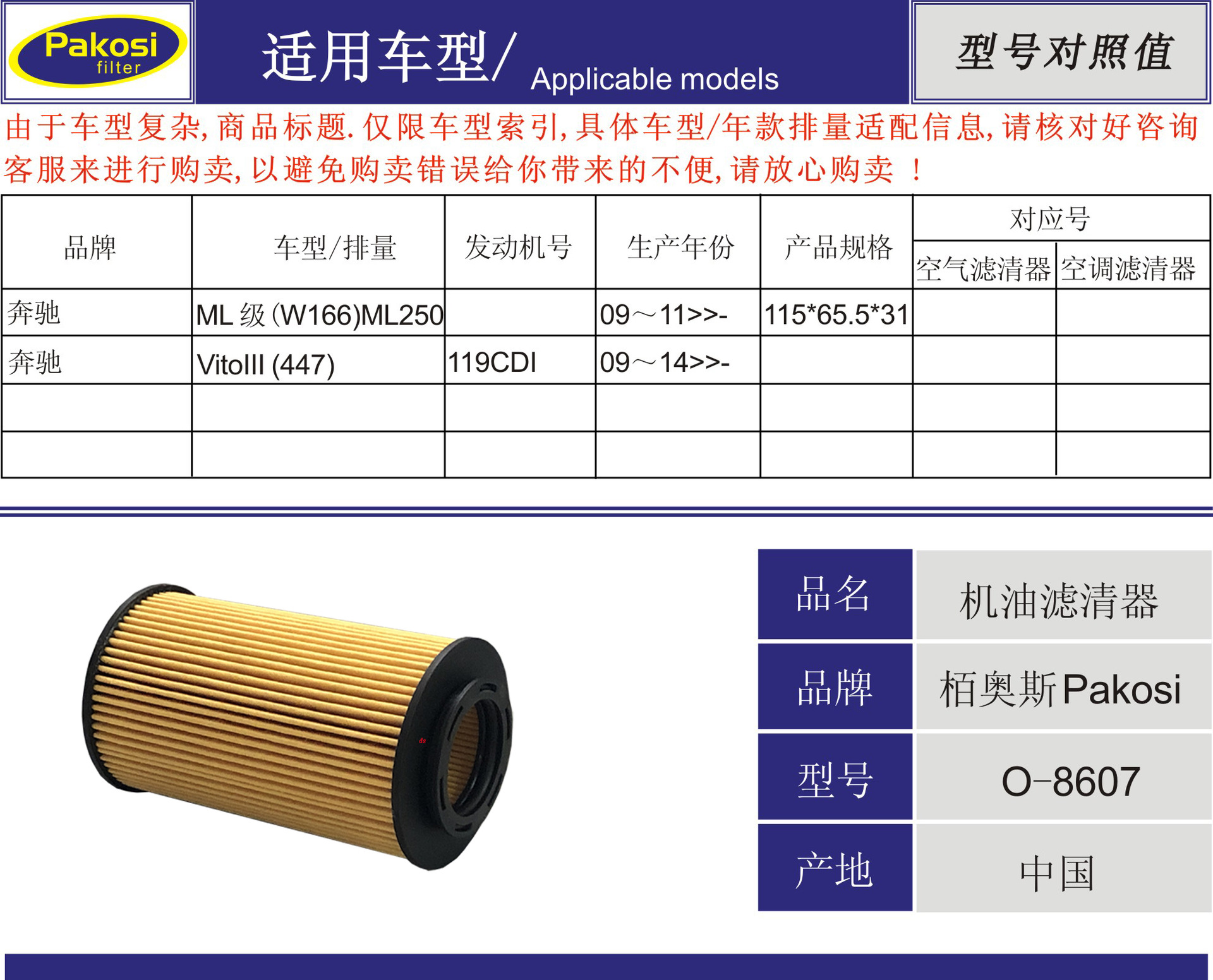 适用车型ML 级(W166) ML250 VitoIII (447)