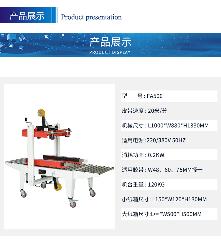 本网页所展示的有关【FA500半自动封箱机 侧边驱动纸箱封箱机 左右驱动纸箱封箱机_封箱机_深圳市华亚泰包装机械设备有限公司】的信息/图片/参数等由全球零部件网的会员【深圳市华亚泰包装机械设备有限公司】提供,由全球零部件网会员【深圳市华亚泰包装机械设备有限公司】自行对信息/图片/参数等的真实性、准确性和合法性负责,本平台(本网站)仅提供展示服务,请谨慎交易,因交易而产生的法律关系及法律纠纷由您自行协商解决,本平台(本网站)对此不承担任何责任。您在本网页可以浏览【FA500半自动封箱机 侧边驱动纸箱封箱机 左右驱动纸箱封箱机_封箱机_深圳市华亚泰包装机械设备有限公司】有关的信息/图片/价格等及提供【FA500半自动封箱机 侧边驱动纸箱封箱机 左右驱动纸箱封箱机_封箱机_深圳市华亚泰包装机械设备有限公司】的商家公司简介、江南(中国)等信息。